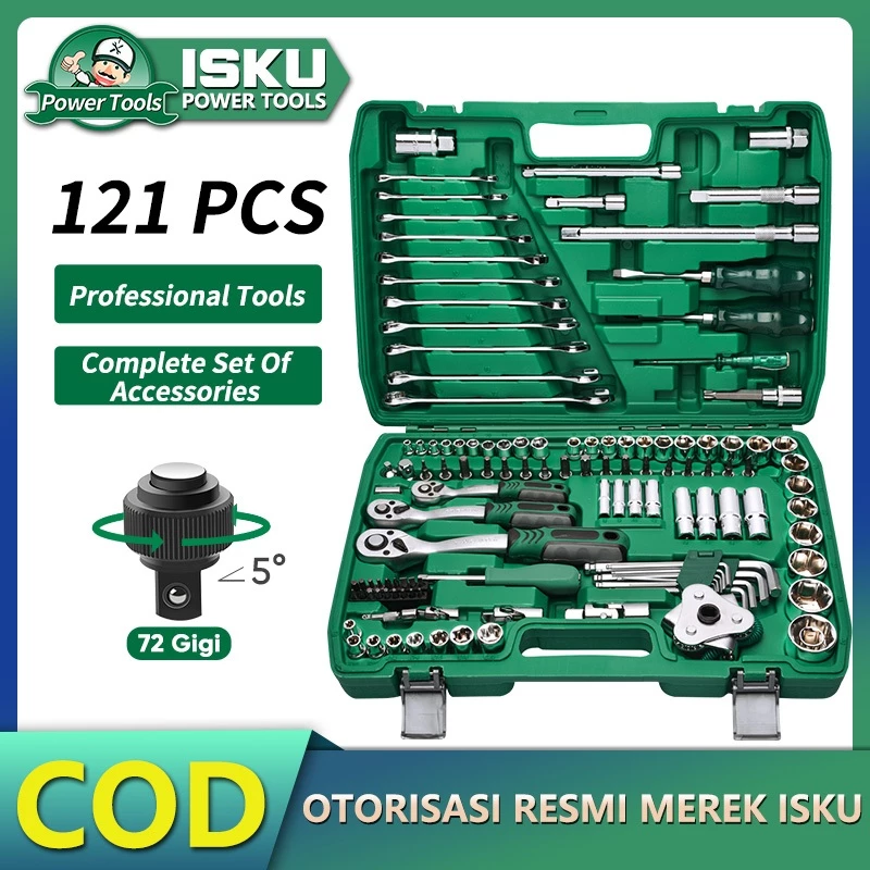 Isku Tools Set 121Pcs/37Pcs 72Gigi Kunci Shock Set Lengkap Kombinasi Termasuk 1 Set Kunci Pas Ratchet 1/2 1/4 3/8 Kunci Pas Ratchet Dan Kunci Socket Set Kunci Mata Sok Set Kunci Ring Pas Set
